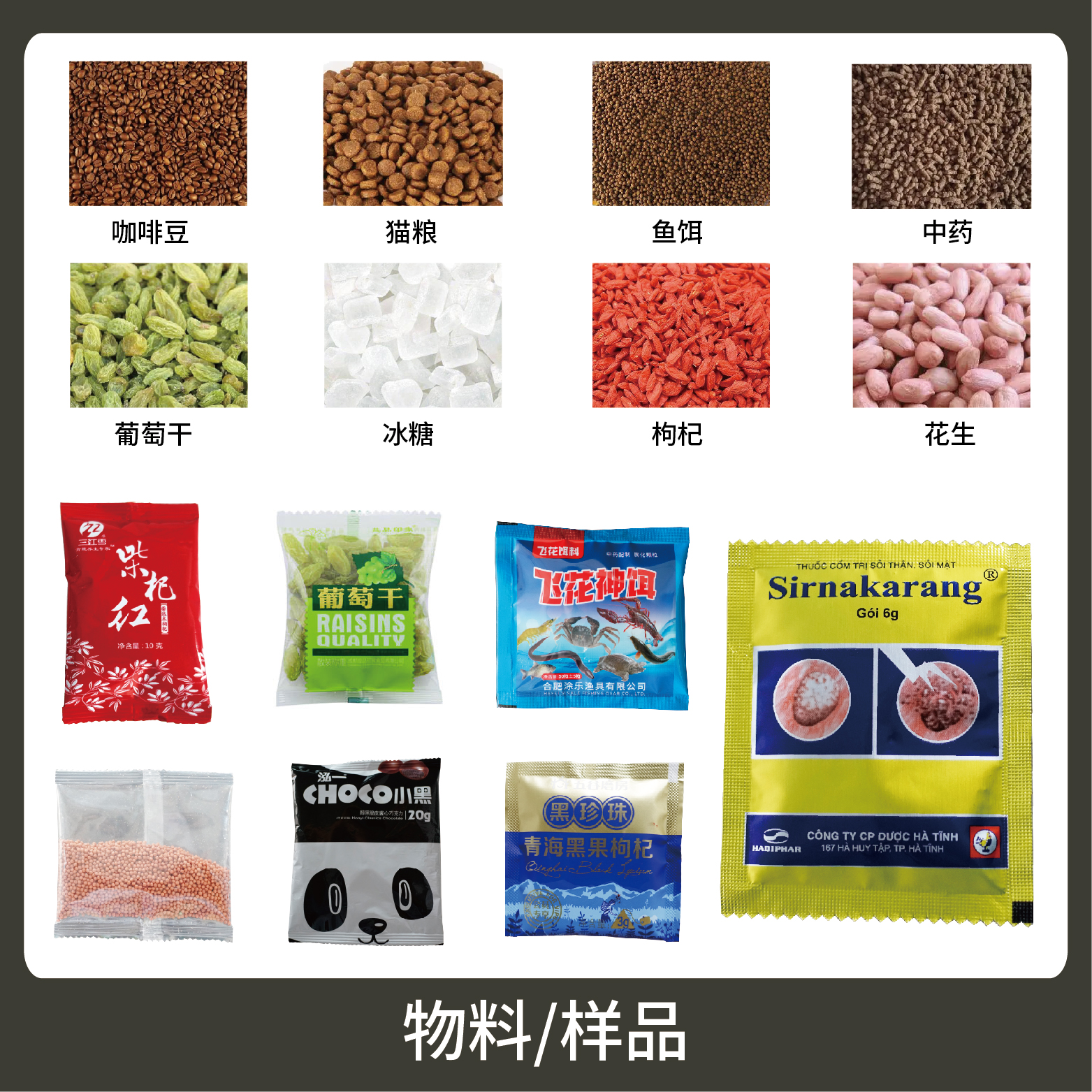 1、適用于食品、醫(yī)藥、化工、化妝品行業(yè)中顆粒物品的計量包裝,如:種子、中藥顆粒、調(diào)味料。